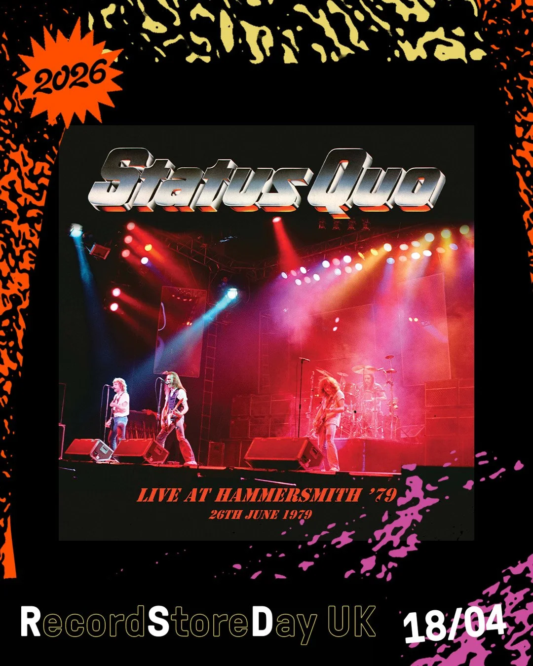 Hear the Quo – live and loud on this ‘Live At Hammersmith ‘79’ on this double LP available exclusively for this year’s Record Store Day, which takes place on the 18th April.